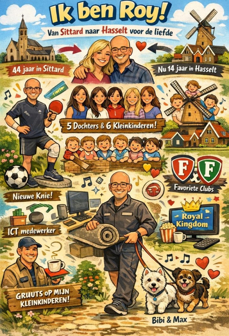 Ik ben Roy, een ras-Limburger die voor de liefde in het noorden is beland. Ik heb 44 jaar in Sittard gewoond en woon nu alweer bijna 14 jaar in het mooie Hasselt.